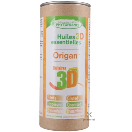 Huile essentielle de Origan 3D: dynamisée, diluée, dispersée. Immunité, bronches et digestion*.L'huile essentielle utilisable en voie orale par tous, à l'efficacité remarquable.