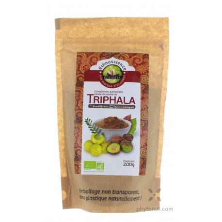 Triphala bio en poudre. Formule Ayurvédique pour réguler les intestins encombrés et la digestion générale*.